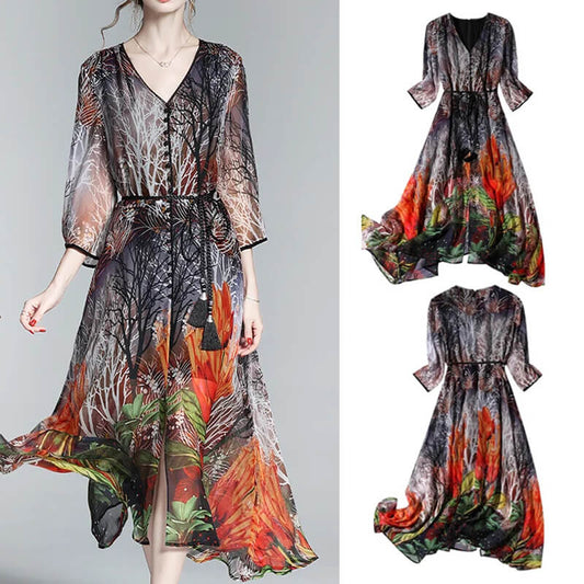 Lockeres, anmutiges, mittellanges Kleid mit Printmuster in Übergröße