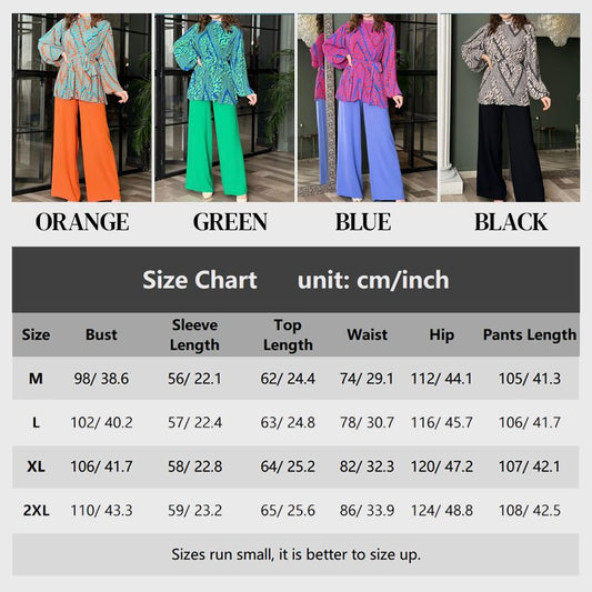 Modische Plissee-Bluse & Hose mit weitem Bein, 2-teiliges Set