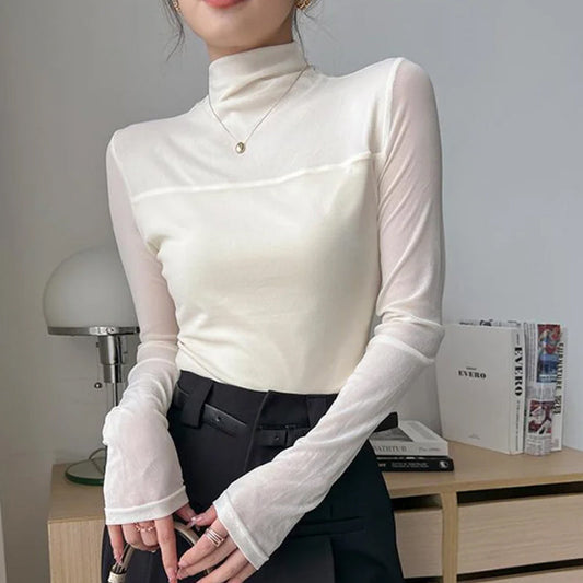 ✨ LETZTER TAG VERKAUF 50% RABATT ✨Damen Mock-Neck Mesh Top