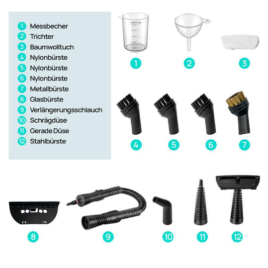 ⏳LETZTER TAG DES AUSVERKAUFS 50% RABATT!!🔥Druckbeaufschlagter Hand-Multiflächen-Naturdampfreiniger mit 12-teiligem Zubehörset