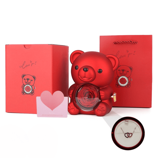 🎁Cute Teddy Bear with Preserved Rose-Necklace Included