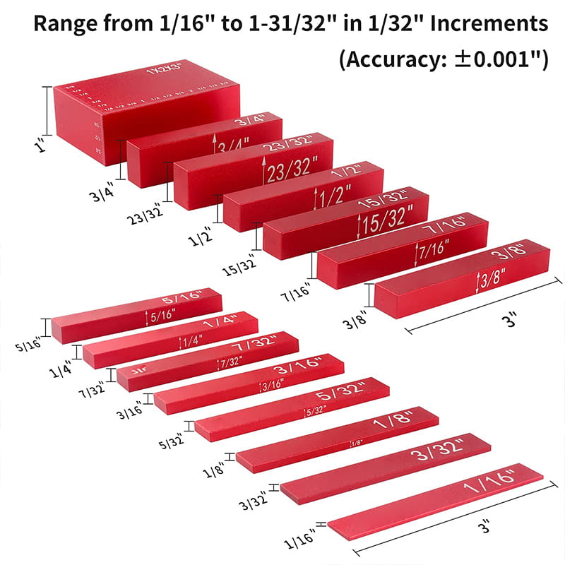 PRÄZISE MESSUNGEN - Das 15-teilige Set bietet höchste Genauigkeit. Jeder Block ist exakt auf das jeweilige Höhenmaß präzisionsgefräst, um absolut punktgenaue und verlässliche Messergebnisse zu gewährleisten.