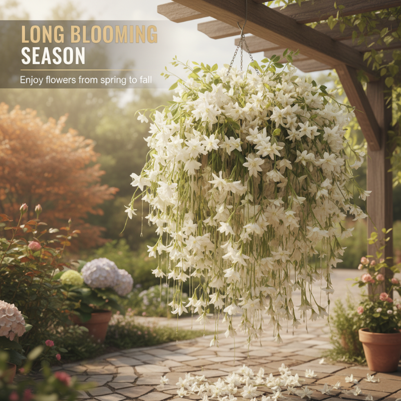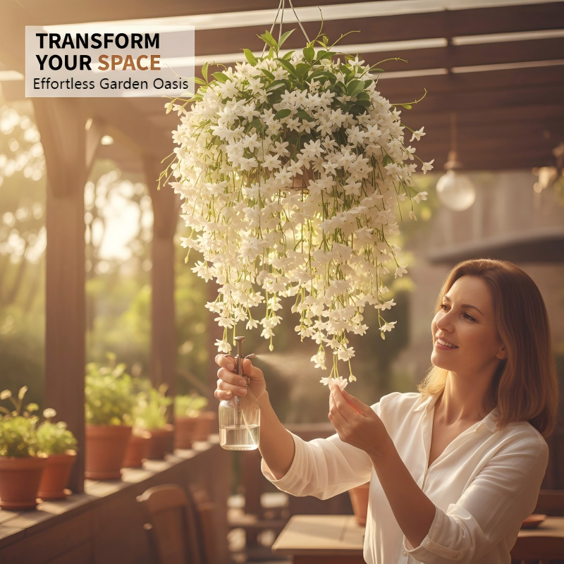 STUNNING FLORAL WATERFALL: Transform your outdoor space into a picturesque retreat. This vigorous climber produces dense, cascading clusters of elegant white flowers, creating a breathtaking waterfall effect on trellises, fences, or pergolas.