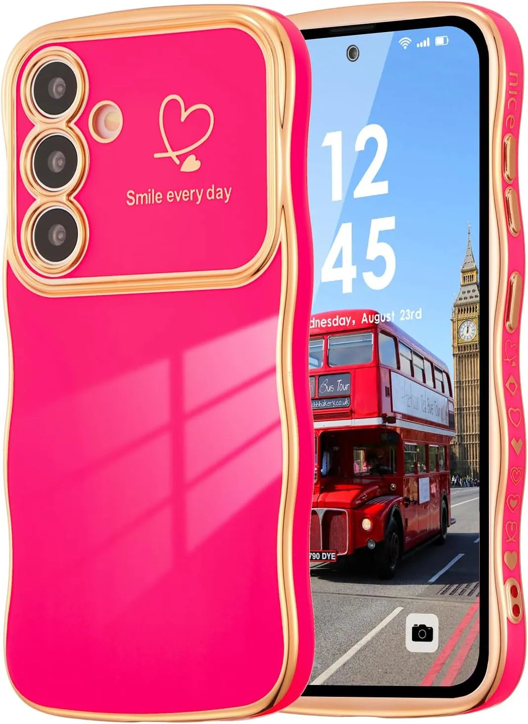 Modische Einfarbige Stoßfeste Liebesherz-Handyhülle mit Wellenrand für Samsung