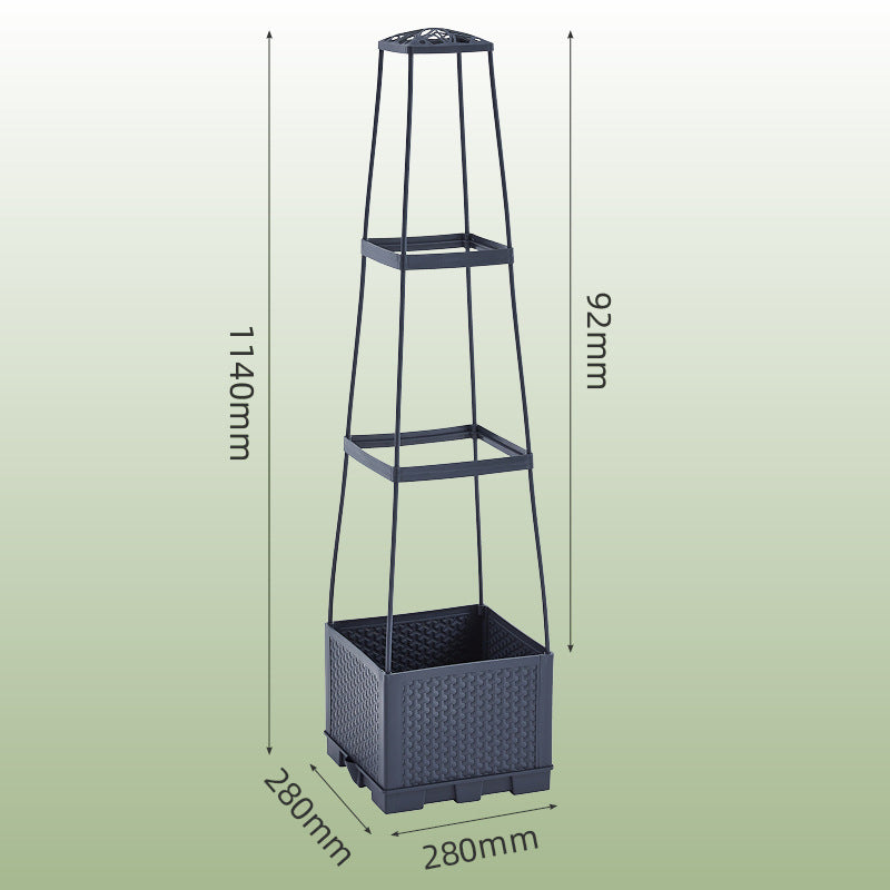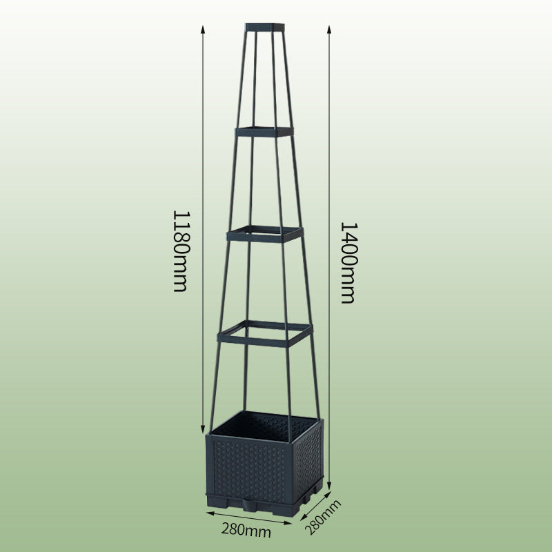 INTEGRIERTER PFLANZKASTEN UND SPALIER - Kombinieren Sie Pflanzgefäß und Rankhilfe in einem nahtlosen Ganzen. Dieses platzsparende Design bietet eine stabile Grundlage für Kletterpflanzen und hilft ihnen, gesund nach oben zu wachsen, ohne dass separate Pfähle oder Käfige erforderlich sind.