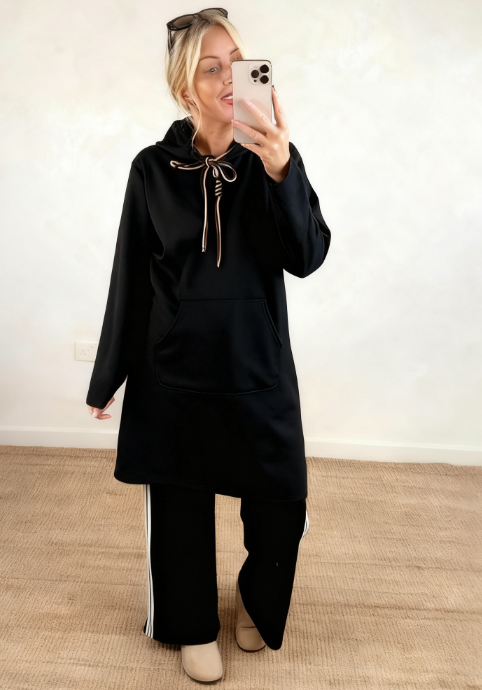 Lieferumfang: 1 x übergroßes langes Kapuzenkleid für Damen mit Taschen.