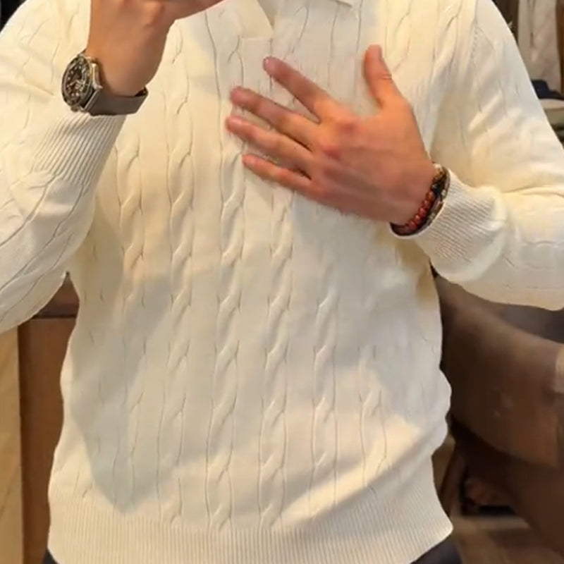 KLASSISCHER REVERSKRAGEN Verleiht Ihrem Look mehr Eleganz als ein herkömmlicher Pullover mit veredeltem Revers-Ausschnitt. Dieses vielseitige Design meistert mühelos den Übergang vom Business-Casual zur Weekend-Freizeit und garantiert stilsicheres Auftreten.