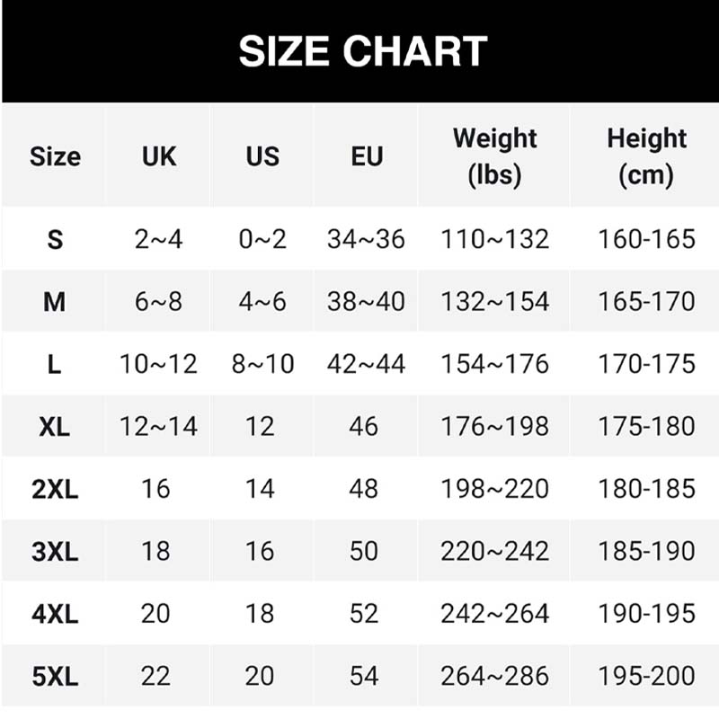 Größen: S, M, L, XL, 2XL, 3XL, 4XL, 5XL